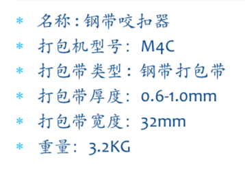 咬扣器打包机的功用是使塑料带能紧贴于被捆扎包件表面,保证包件在运输、贮存中不因捆扎不牢而散落,同时还应捆扎整齐美观。