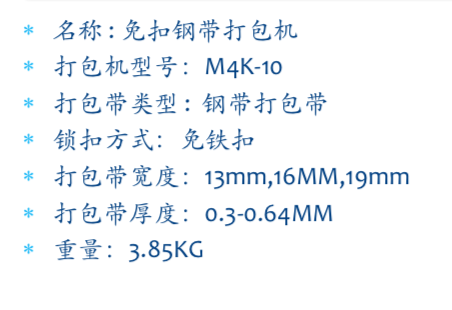 钢带打包机,专门捆扎钢带的打包机,是使用钢带缠绕产品或包装件,然后按收紧键,收紧多余的钢带,使钢带紧贴产品或包装件,再通过热效应熔融或使用钢扣等材料将钢带两面连接的机器